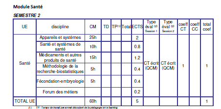 Cette UE est gérée par l'UFR SANTE
