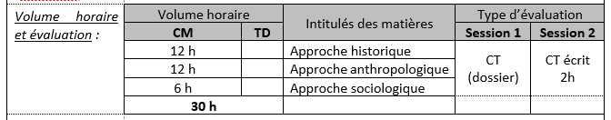 Cette UE voudrait montrer, à partir de thématiques choisies, la fécondité des rencontres méthodologiques et du comparatisme. Rassemblant des intervenants venus de l’anthropologie, de la sociologie, de la psychologie, de l’histoire, elle fera, avec rigueur et inventivité, voyager entre questions et approches et invitera à ce que l’Université peut offrir de meilleur : le dépaysement intellectuel.